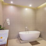 - 3 Air-conditioned with king size bed 180×200, wardrobe and en-suite bathrooms with bathtub and shower.